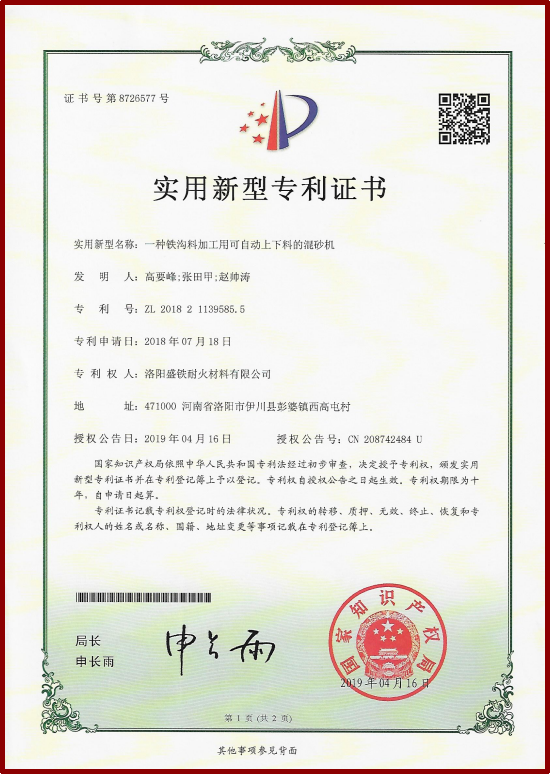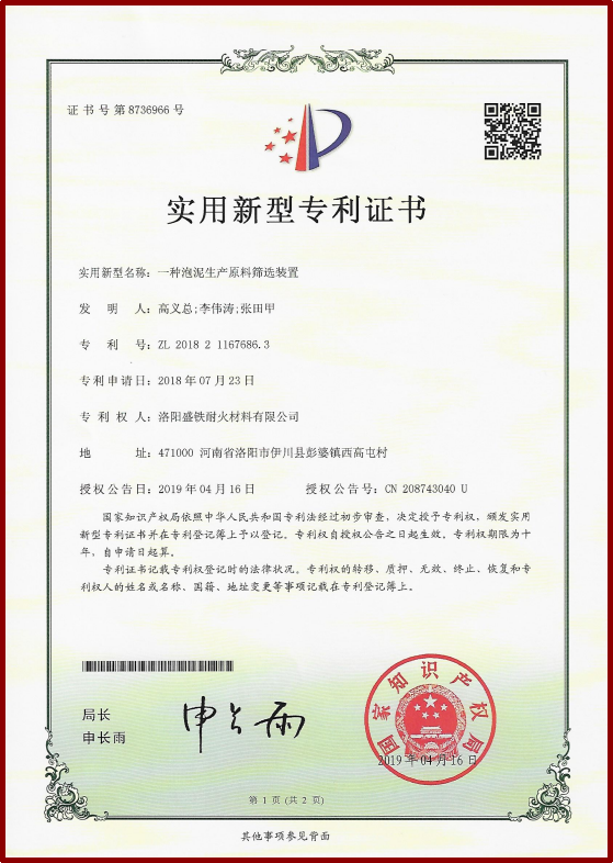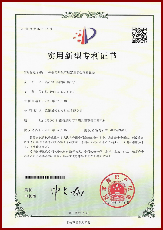 公司擁有先進的管理體系,先后通過了ISO9001質量、環(huán)境、職業(yè)健康安全國 際管理體系認證,兩化融合管理體系認證和知識產(chǎn)權管理體系認證。不斷研發(fā)新產(chǎn)品、新工 藝、新技術,目前已累計申報40項專利及發(fā)明成果。先后獲得:“國家高新技術企業(yè)”、“國家 專精特新小巨人企業(yè)”、“中國耐火材料行業(yè)協(xié)會AAA信用等級企業(yè)”、“河南省科技型中小企 業(yè)”、“河南省科技小巨人企業(yè)”、“洛陽市誠信經(jīng)營民營企業(yè)”、 “公司還榮獲了“河南省工業(yè)品牌”、“河南省質量獎”、“河南省企業(yè)技術中心”、“河南省綠色企業(yè)”、“河南省環(huán)境保護優(yōu)秀企業(yè)”、“河南省科技型中小企業(yè)技術創(chuàng)新基金”等30余項榮譽。此外,公司在近年來還參與了多項國家重點研發(fā)計劃項目,為推動行業(yè)技術進步和產(chǎn)業(yè)升級作出了積極貢獻
